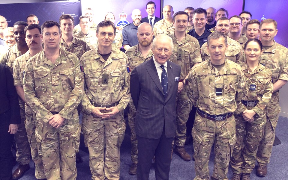 His Majesty was welcomed by the Deputy Commander of Cyber & Specialist Operations Command (CSOC), Air Marshal Suraya Marshall, before being shown the operational control rooms from which all live overseas operations are managed.
