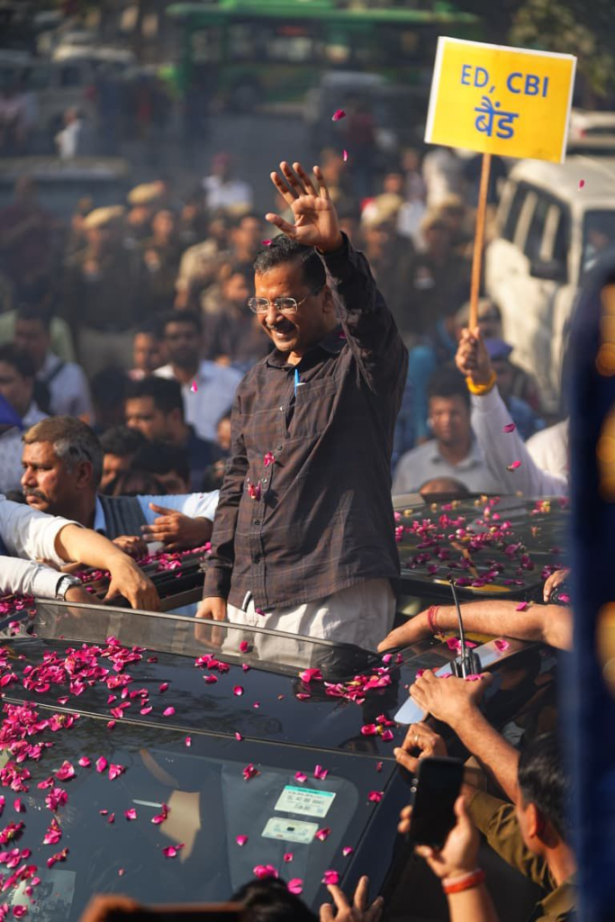 After the court decision, Kejriwal addressed a press conference at 4 pm at the party headquarters. A large crowd of leaders and workers gathered; there was celebration and congratulations. Kejriwal arrived via a road show with many supporters.