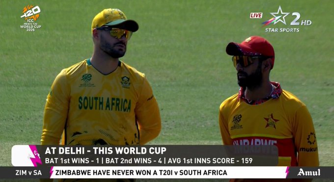 New Delhi, March 1: Captain Sikandar Raza produced a scintillating display of power and precision to propel Zimbabwe to a competitive 153 for 7 against South Africa in their 2026 Men’s T20 World Cup Super Eights clash at the Arun Jaitley Stadium on Sunday.