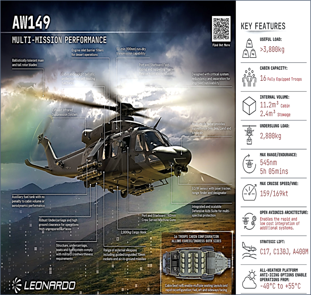 Nigel Colman further asserted that, “the AW149 NMH will deliver multiple rotary wing requirements using a single aircraft-type. This means that the platform will be able to undertake defence tasks that were previously delivered by three different aircraft types, streamlining our capabilities while improving efficiency and operational flexibility now and in the future”.