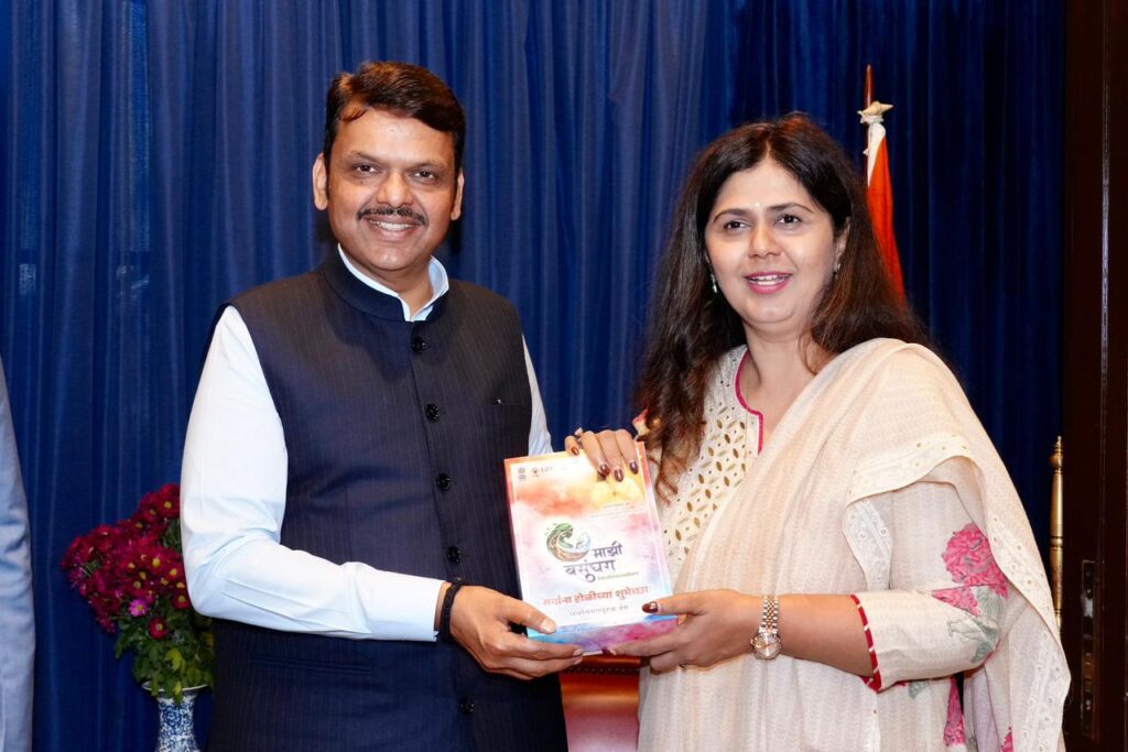 Mumbai, March 2026 : In view of Holi and Dhulivandan, and as part of the initiative encouraging citizens to celebrate an eco-friendly Holi, Minister for Environment and Climate Change Pankaja Munde extended environmentally conscious Holi greetings to Chief Minister Devendra Fadnavis, Deputy Chief Minister Eknath Shinde, and Legislative Assembly Speaker Rahul Narvekar by presenting them with a set of five eco-friendly colours.