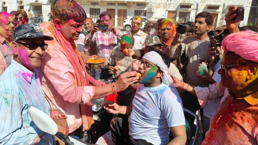 Jaipur, March 2026 : Minister of State for Forest and Environment (Independent Charge), Sanjay Sharma, celebrated Holi with city residents by applying herbal gulal at the Namo Holi Utsav organised at his residence in Alwar on Wednesday.