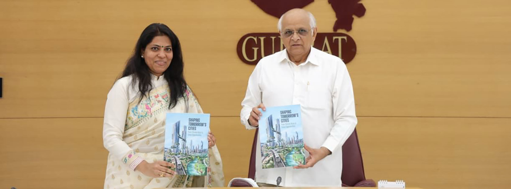 CM Bhupendra Patel releases the book “Shaping Tomorrow’s Cities – From Climate Risk to Green Opportunities”