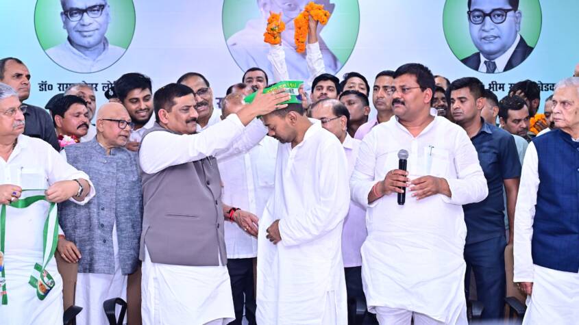 During the ceremony, party leaders welcomed Nishant Kumar into the organisation in a traditional manner. Sanjay Kumar Jha presented him with a party memento and cap, symbolising his induction into JD(U). Lalan Singh honoured him by tying the party turban, marking the formal start of his political journey.