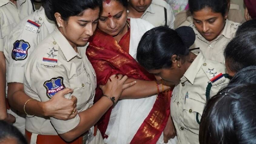Hyderabad, March 2026 Police in Khammam on Tuesday detained K. Kavitha, who had launched an indefinite hunger strike demanding justice for families allegedly displaced from a land parcel in the town. Kavitha, the president of Telangana Jagruti, had begun the fast late Monday night in protest against the eviction of several poor families in the Velugumatla area.