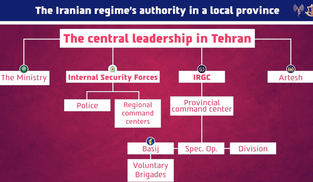 The IDF can now reveal that most of the key assets of the regime’s Internal Security Forces and Basij units in the province were dismantled, including: