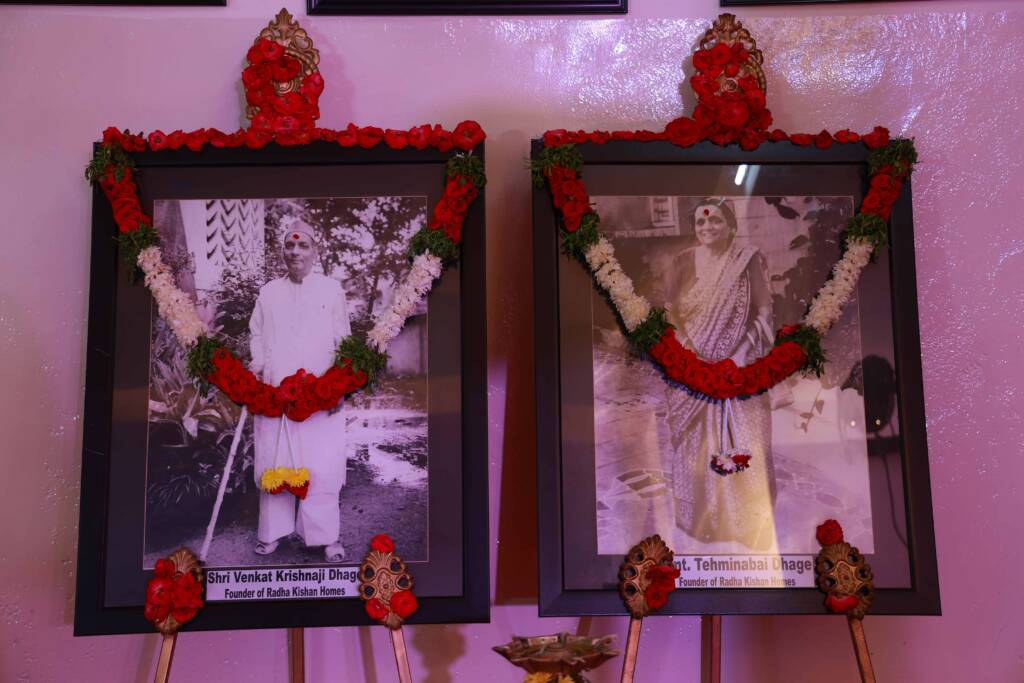 Sri V K Dhage and Mrs Temina Bai Dhage were the Founders of the Homes. The Homes are named after Sri VK Dhage’s parents, Krishna and Radha Dhage. Sri Dhage formed a Trust with his personal finances to support the operations of the homes. After his death, Mrs Temnina Bai Dhage, his wife, took over the running of the homes.