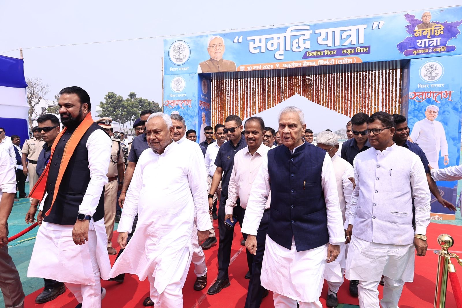 Nitish Kumar, Chief Minister of Bihar, on Wednesday chaired a review meeting in Araria district to assess the progress of various development and welfare schemes being implemented in the region. The meeting was held at the temporary auditorium of Araria College as part of the Chief Minister’s Samriddhi Yatra 2026.