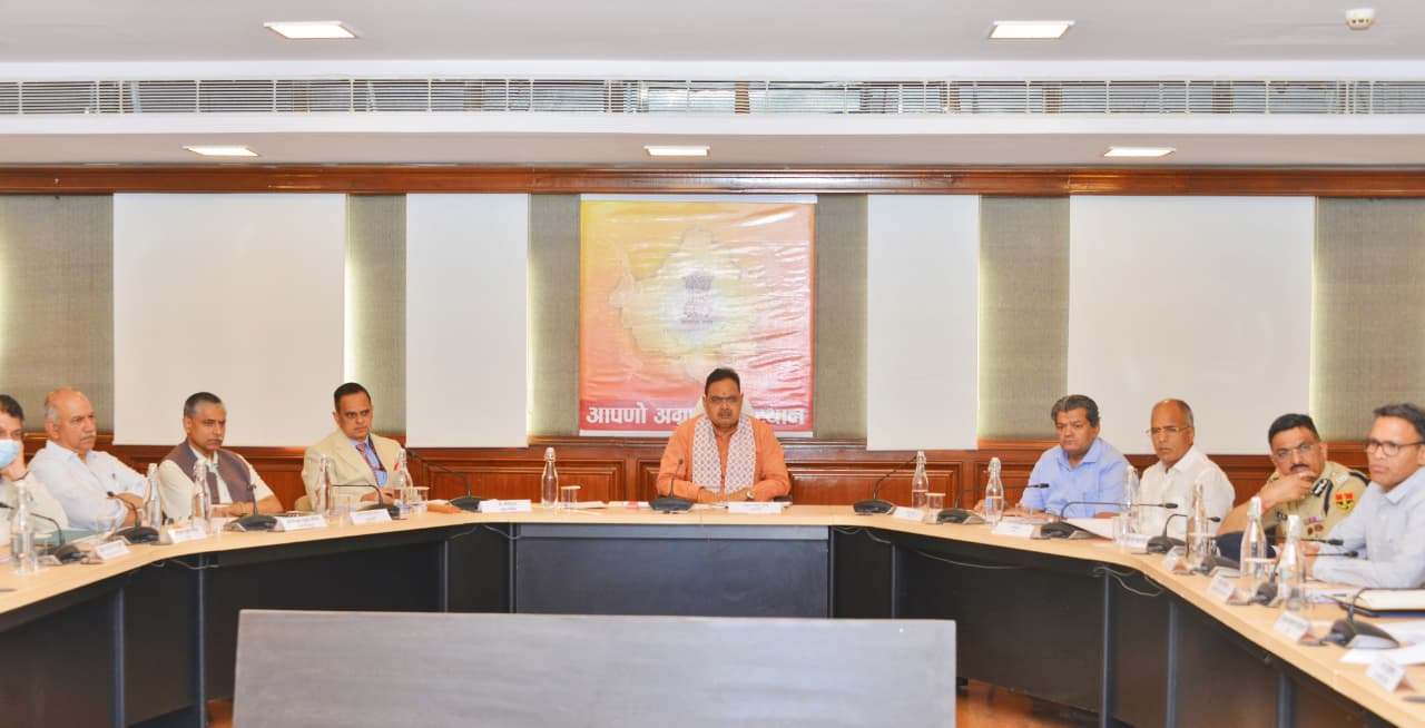 The meeting was attended by Public Health Engineering Minister Kanhaiya Lal, Food and Civil Supplies Minister Sumit Godara, Chief Secretary V. Srinivas, and other senior officials. Minister of State for Forest and Environment Sanjay Sharma and several divisional commissioners and district collectors joined the meeting through video conferencing.