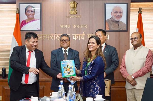 H.E. Mr. Y. Thong, Deputy Minister, Ministry of Ethnic & Religious Affairs, Vietnam, accompanied by a delegation, today called on Dr. Chandra Shekhar Kumar, Secretary, Ministry of Minority Affairs, during his visit to India. The meeting reflected on the long-standing historical and civilisational ties between India and Vietnam, including their shared Buddhist heritage and strong people-to-people connections. Both sides also noted the significance of the 10th year of the India–Vietnam Comprehensive Strategic Partnership and discussed ways to further deepen bilateral cooperation.