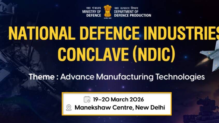 The National Defence Industries Conclave (NDIC) 2026, organised by the Department of Defence Production (DDP) on the theme ‘Advanced Manufacturing Technologies’, will be held at Manekshaw Centre, New Delhi on March 19-20, 2026. The two-day event will be inaugurated by Raksha Mantri Shri Rajnath Singh. The conclave aims to strengthen the integration of Micro, Small & Medium Enterprises (MSMEs) to India’s defence manufacturing ecosystem while promoting the adoption of advanced technologies such as automation, artificial intelligence, robotics, additive manufacturing, digital twins and smart materials. The initiative aligns with the Government’s vision of Aatmanirbharta in defence, and seeks to enhance India’s technological capability and global competitiveness in defence production.