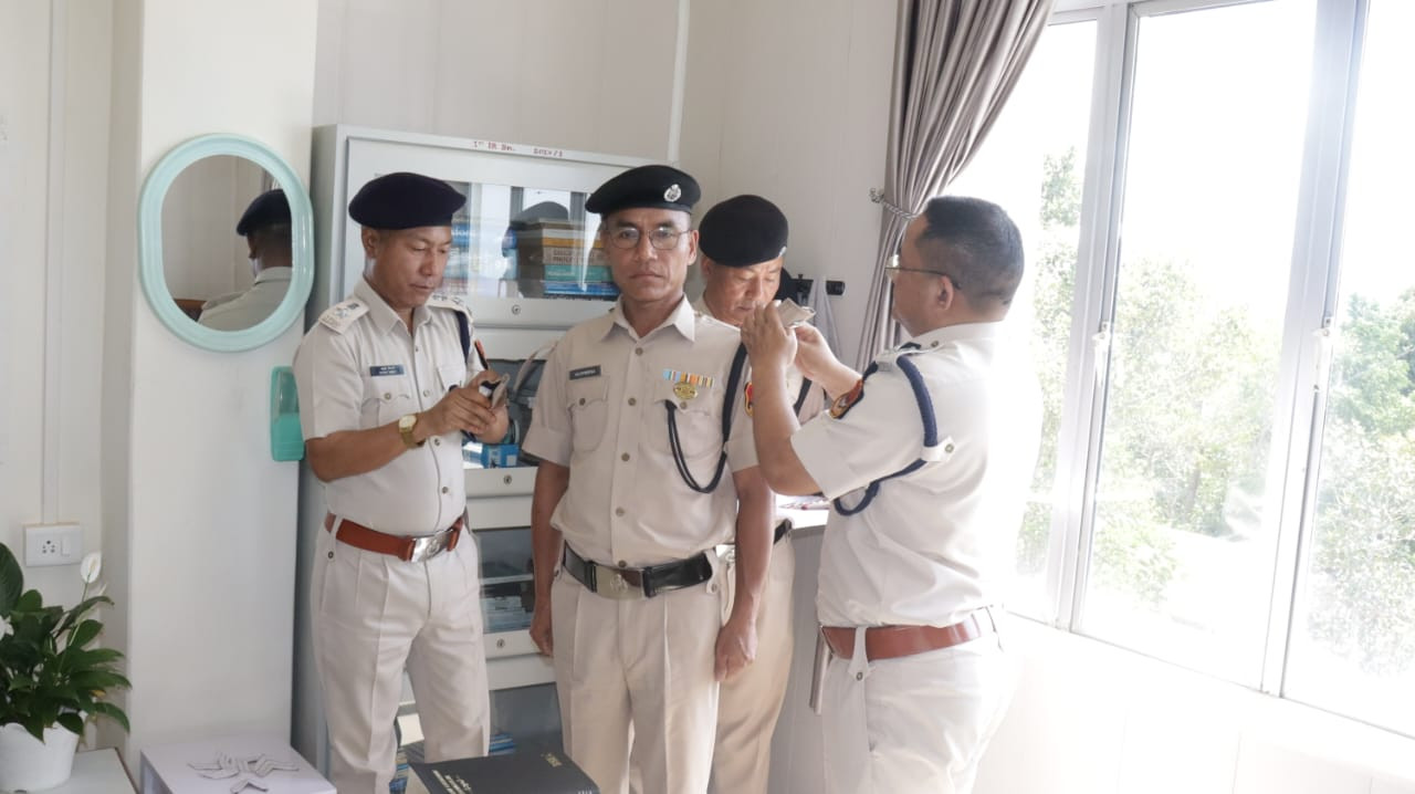 Commandant of 1st IR Battalion, Mualvum Awards Rank Badges to Newly Promoted Police Personnel