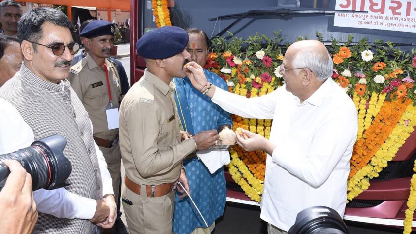 The event was held in Gandhinagar, where Chief Minister, Deputy Chief Minister, and Minister of State for Transport Shri Pravin Mali flagged off 182 new buses, one for each of the state’s 182 Assembly constituencies, for passenger service, in the presence of State Cabinet Ministers, MLAs, and office bearers. The Chief Minister and the Deputy Chief Minister also symbolically handed over keys to the drivers of these new buses.