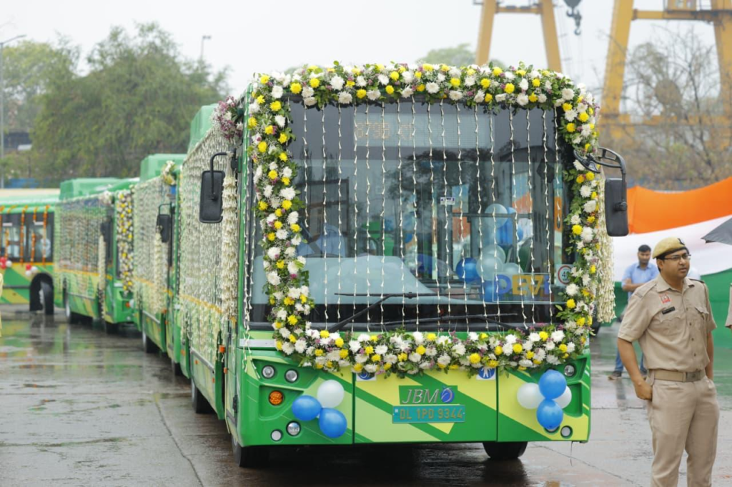- The Delhi government has taken several major steps to make public transport more modern, clean and convenient. As part of this effort, the Chief Minister flagged off 300 new zero-emission electric buses. These buses are low-floor and air-conditioned, and come equipped with CCTV cameras, panic buttons, real-time tracking and facilities for persons with disabilities. With their induction, Delhi has become the city with the largest electric bus fleet in the country, and the government aims to scale this up to around 14,000 buses by 2028–29.