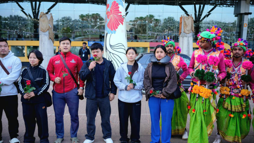 On their arrival in the state, the athletes received a grand and colorful स्वागत at Swami Vivekananda Airport in Raipur. Officials from the Department of Sports and Youth Welfare and the Sports Authority of India (SAI) warmly welcomed the players by presenting them with roses. The reception was further enlivened by vibrant performances from the traditional Raut Nacha dance troupe, creating a festive atmosphere.