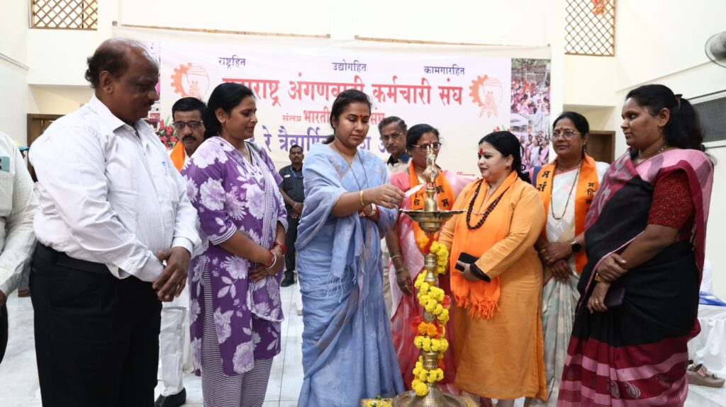 She was speaking at the third annual state convention of the Maharashtra Anganwadi Employees Union, affiliated with the Bharatiya Mazdoor Sangh, held at Laxmi Narayan Mangal Karyalaya in Mangalwar Peth, Satara. District Civil Surgeon Dr. Yuvraj Karpe, Corporator Siddhi Pawar, State President of Bharatiya Mazdoor Sangh Anil Dhumne, Federation Secretary Sangeeta Srivastava, General Secretary Kiran Milgir, Shripad Kutasak, and Anganwadi workers and helpers from across the district were present on the occasion.