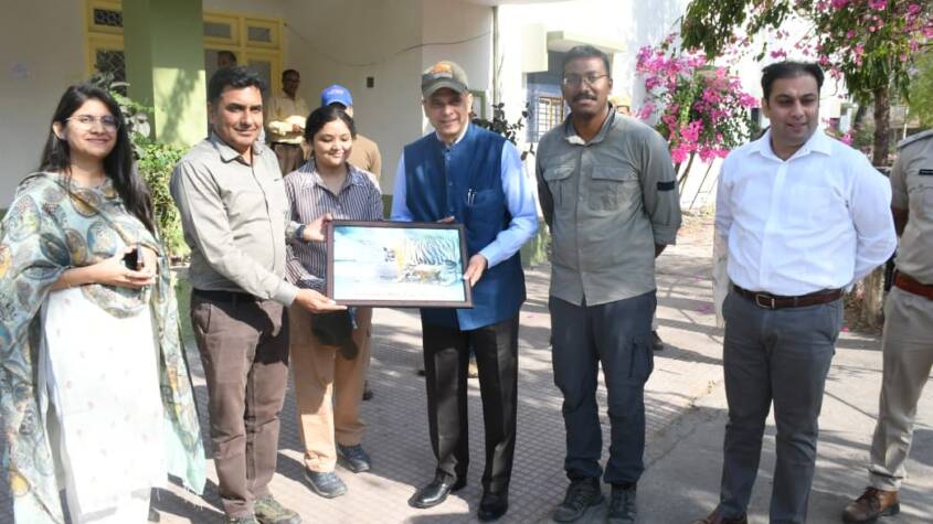 During the visit, officials briefed him on various conservation initiatives, including inter-state tiger translocation, prey base augmentation, habitat improvement, and grassland development. He was also informed about innovative measures such as lifting water from the Chambal River using solar energy to ensure uninterrupted water supply for wildlife during the summer months.