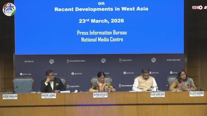 Senior officials from the Ministries of Petroleum and Natural Gas, Ports, Shipping and Waterways and Ministry of External Affairs addressed the media today at the National Media Centre, as part of the ongoing inter-ministerial briefings on developments in West Asia. These briefings are being held regularly to provide timely updates on the evolving situation. During today’s interaction, comprehensive inputs were shared on the status of fuel supply, maritime operations, and efforts being undertaken to support Indian nationals in the region, along with the measures in place to ensure continued stability across these sectors.