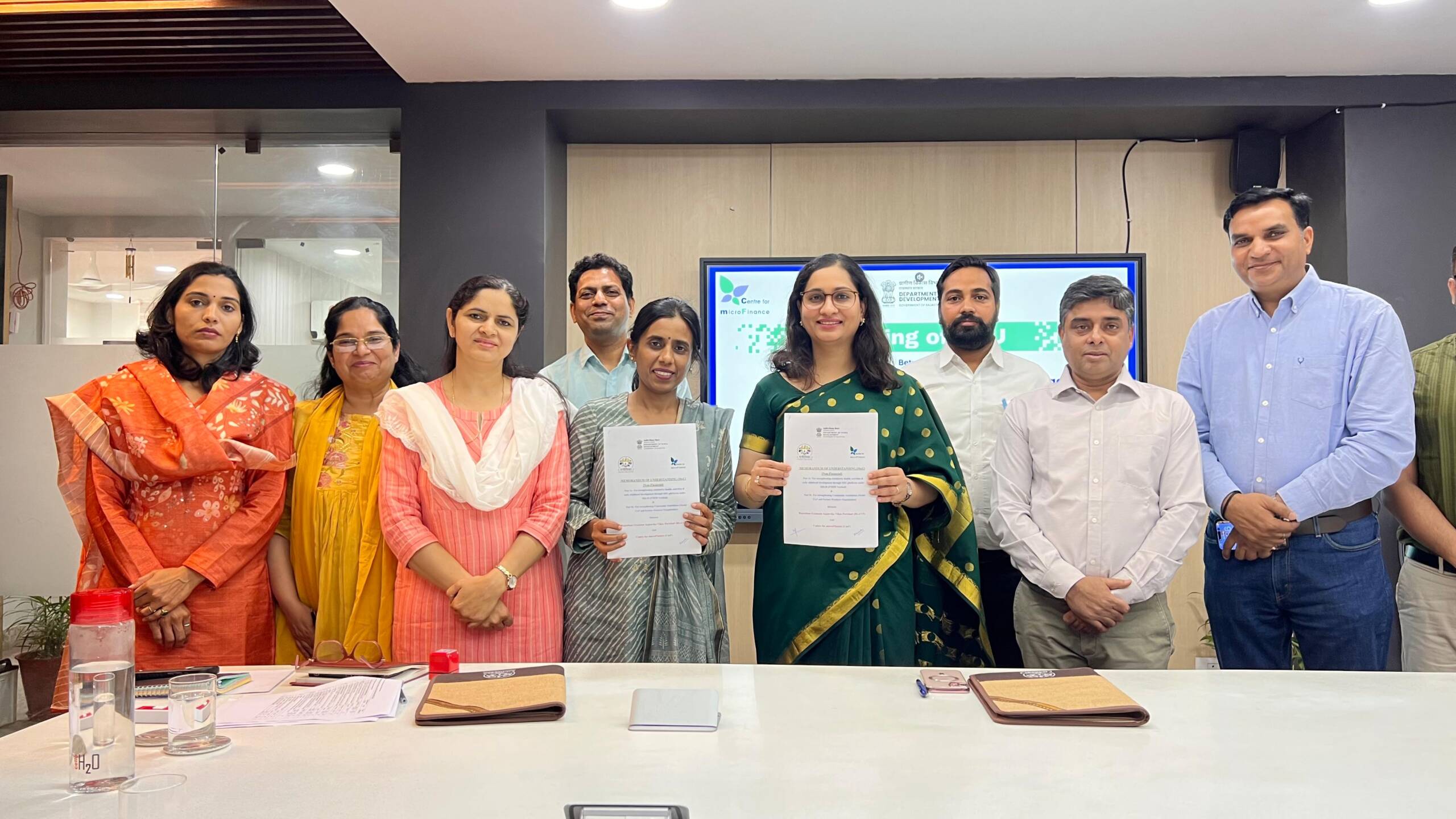 The event was attended by Project Director (Administration) Preeti Singh, State Project Manager (IB) Sunita Chaudhary, State Project Manager (SISD) Neeru Meena Tulsiram, along with senior officials from both organisations, including General Managers Kumar Ranjan and Vijay Singh from the Centre for Microfinance.