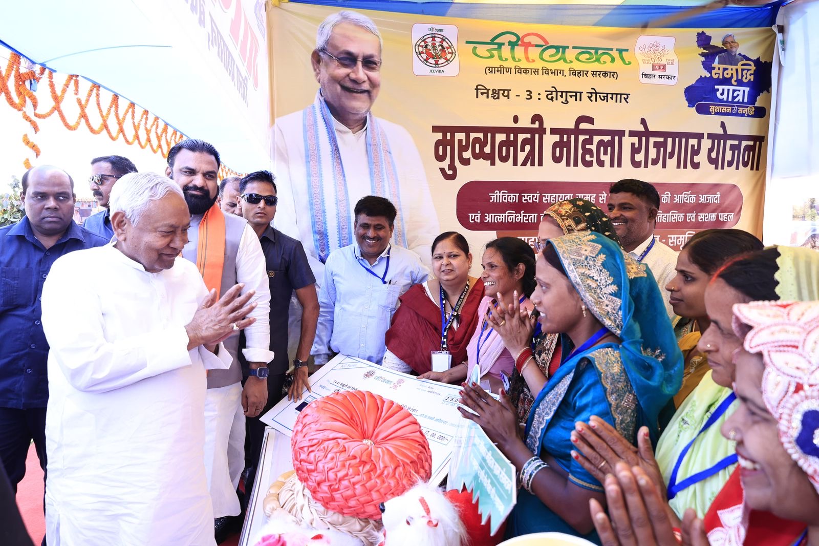 Patna, March 2026: Chief Minister Nitish Kumar today reviewed development and welfare schemes related to Bhojpur district during the Samriddhi Yatra. The review was conducted at the programme venue set up at the Krishi Utpadan Bazar Samiti in Ara.
