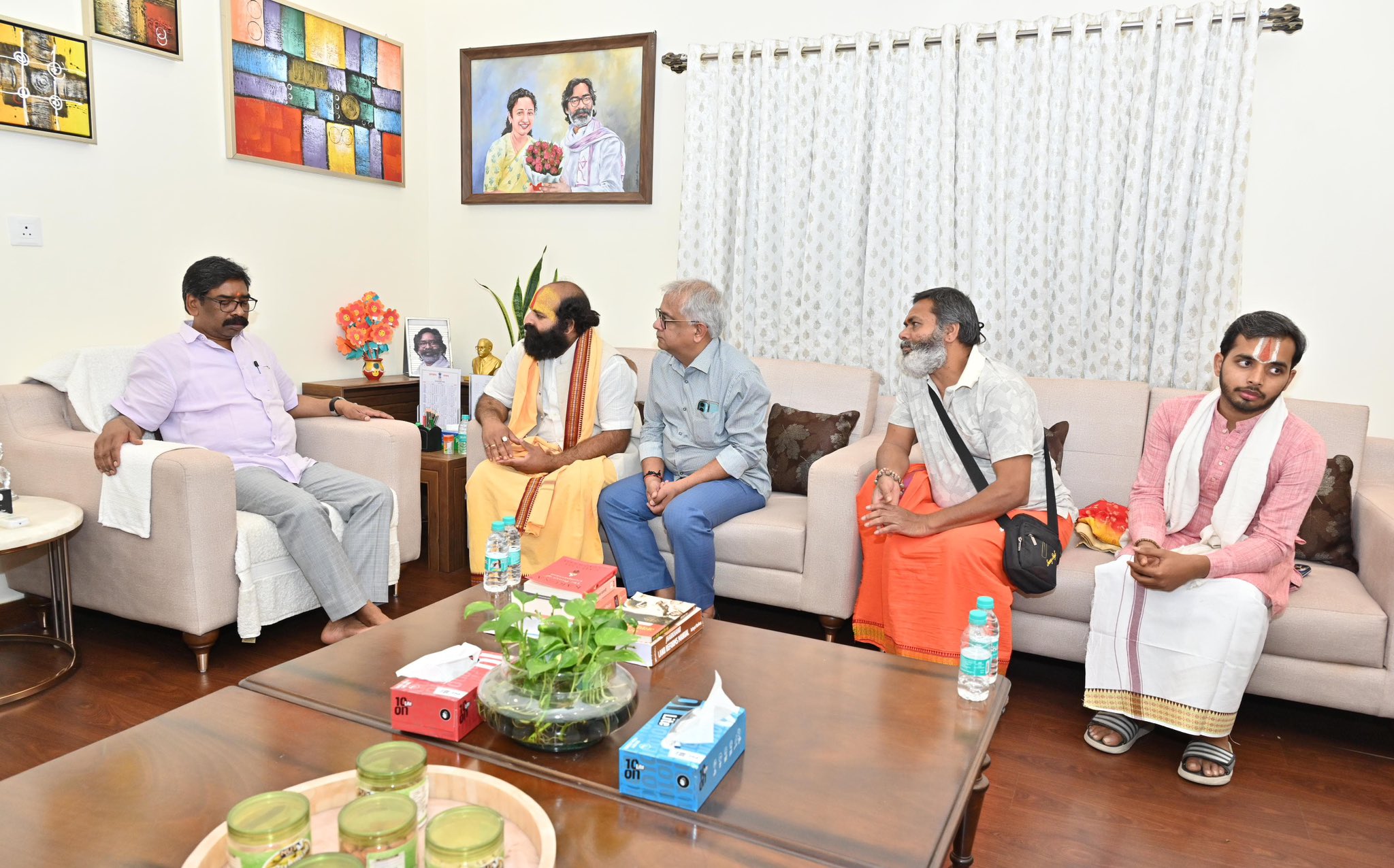 Ranchi, March 2026: Jharkhand Chief Minister Hemant Soren met a delegation from Tapovan Mandir, Snivaranpur, at his residential office on Kanke Road in Ranchi. The delegation, led by Mahant Om Prakash Sharan, paid a courtesy visit to the Chief Minister and extended an invitation for the upcoming Ram Navami Mahotsav scheduled to be held on March 27, 2026.