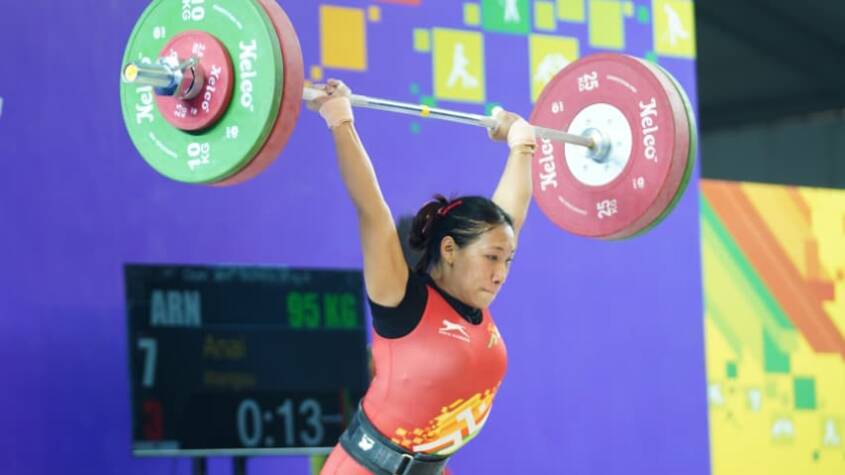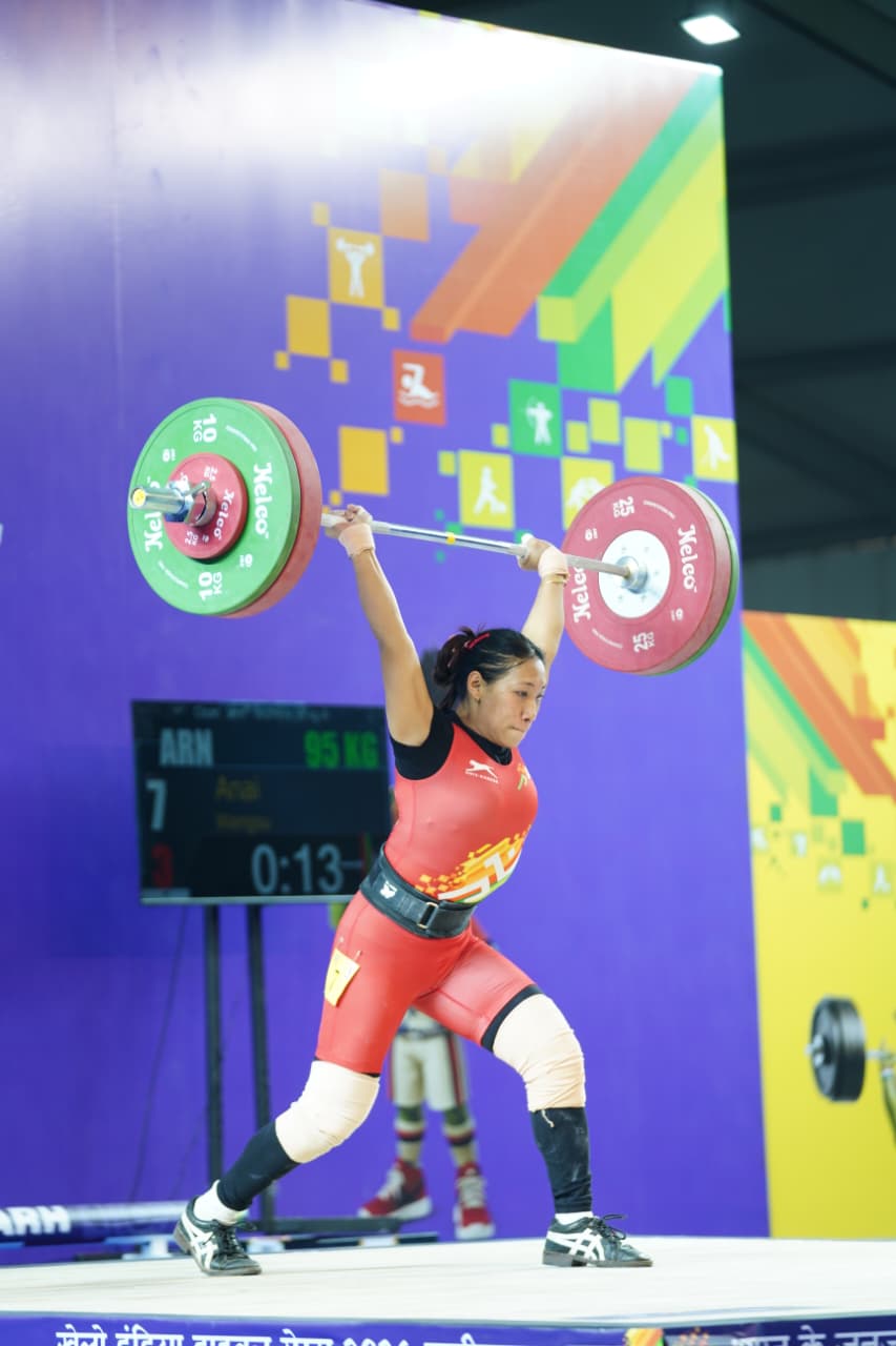Anai Wangsu from Arunachal Pradesh emerged as the winner, clinching the gold medal with a total lift of 169 kg. She demonstrated excellent strength and technique, lifting 74 kg in the snatch and 95 kg in the clean and jerk to secure the top position.