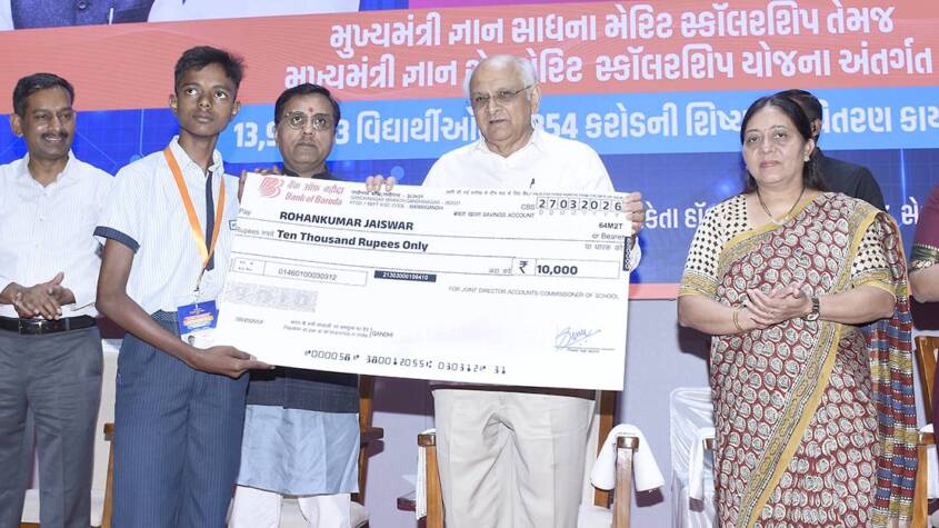 Gandhinagar, March 2026: To make education inclusive and quality-driven, the State Government organised a grand scholarship distribution ceremony at Vidya Samiksha Kendra, Gandhinagar, under the chairmanship of Chief Minister Shri Bhupendra Patel and in the presence of Education Minister Dr Pradyuman Vaja.