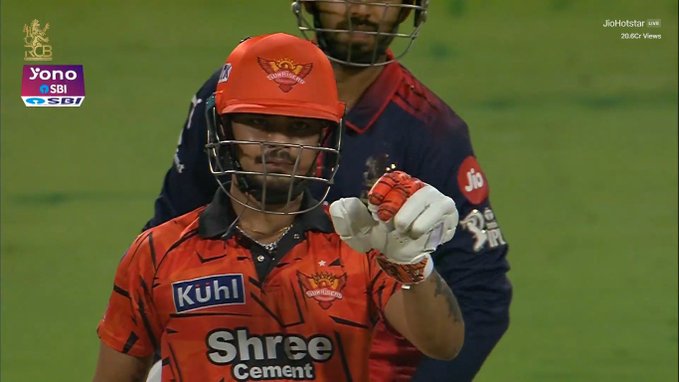 Kishan was at his fluent best, reaching his half-century in just 32 deliveries. His innings of 80 off 38 balls was studded with eight boundaries and five towering sixes, as he took on both pace and spin with confidence. He punished loose deliveries from Abhinandan Singh and Suyash Sharma, ensuring SRH maintained a strong scoring rate despite early setbacks.