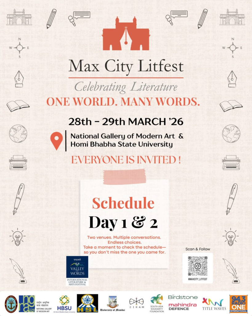 Mumbai, March 2026 : The second edition of the MaxCity VoW Literature Festival will be held on March 28 and 29 at the National Gallery of Modern Art and Homi Bhabha State University in Mumbai. The festival, themed “Between War and Peace: One World, Many Words,” will bring together authors, scholars, policymakers, and experts from strategy and administration.