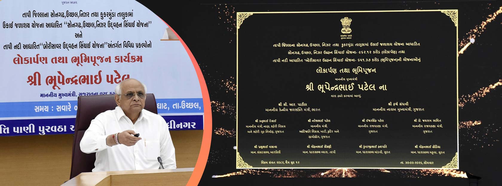 Gandhinagar, March 2026: Chief Minister Shri Bhupendra Patel virtually inaugurated and laid the foundation stone from Gandhinagar for development projects worth approximately ₹1,600 crore in Tapi district for tribal areas, including the Ukai reservoir-based Songadh, Uchhal, and Nizar lift irrigation schemes, as well as the Borisavar Yojana.