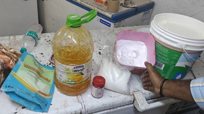 The police confiscated 92 packets of ice candies, each containing 180 units, and 20 packets of lassi candies with 210 pieces in each. In addition, 300 glasses of lassi, 15 buckets of curd weighing 10 kg each, 50 kg of sugar, a lassi-making machine, 8 kg of citric acid, 500 grams of sucrose, and other equipment were seized from the premises.