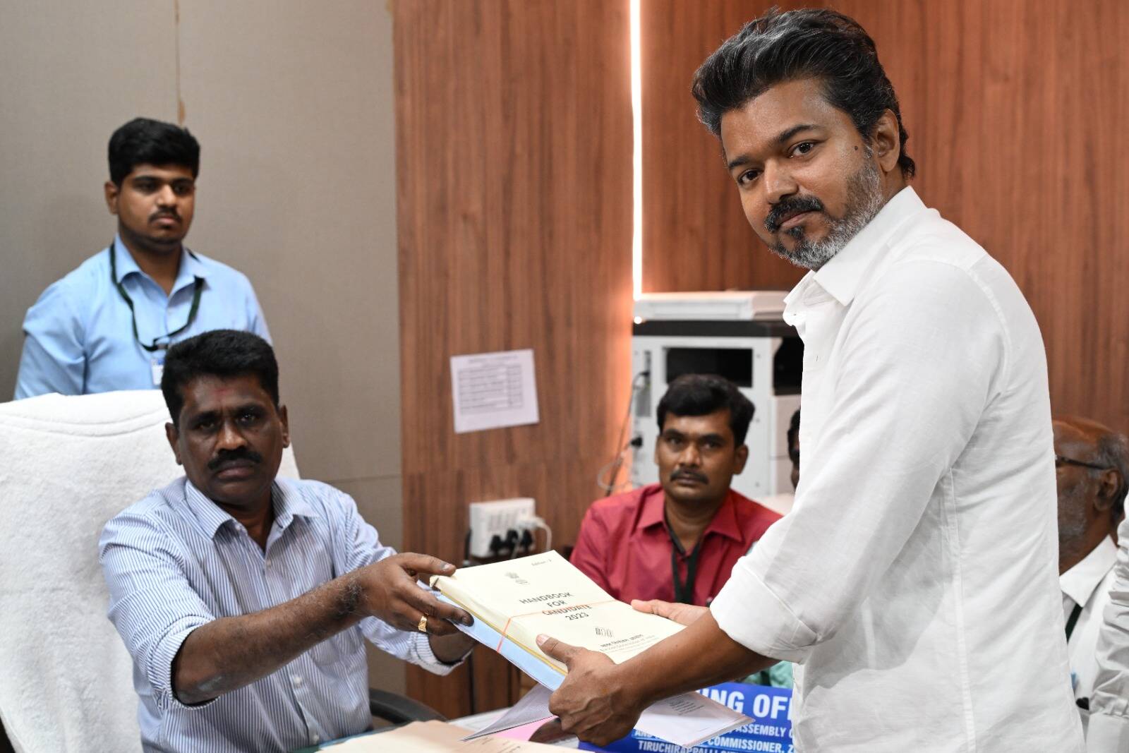 Later, Vijay reached the Tiruchy East constituency office, where he formally submitted his nomination papers to Returning Officer Muthu Murugesa Pandian. The filing marked a significant step in his political campaign as he seeks to expand his party’s presence in Tamil Nadu’s electoral landscape.