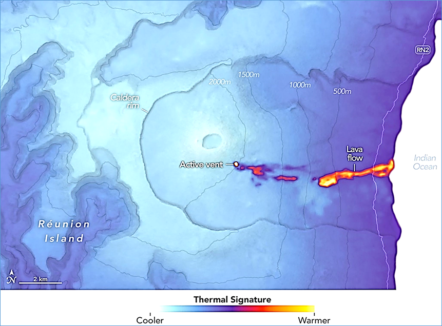 NASA Observes Réunion Island Lava Reaches The Sea.