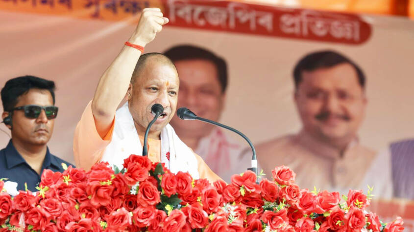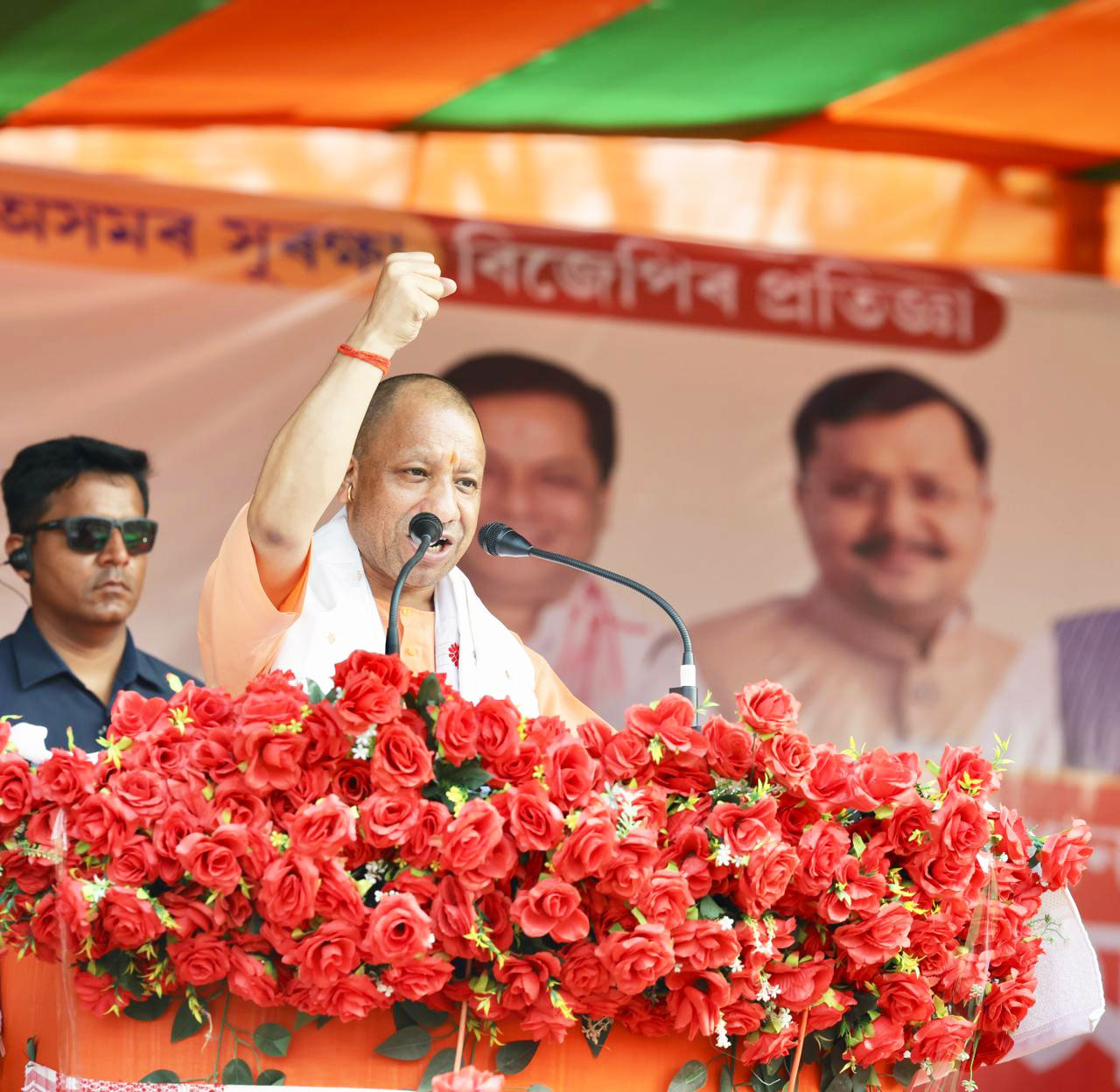 Uttar Pradesh Chief Minister Yogi Adityanath addresses election rally in Assam