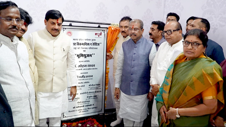 Chief Minister Dr. Yadav and Union Education Minister Shri Pradhan performed the Bhoomi-Poojan for the expansion of the Madhya Pradesh Tourism unit ‘Samrat Vikramaditya – The Heritage’. Currently, the facility has 19 rooms, three restaurants including a rooftop restaurant, a Panchakarma centre and a library. Considering the growing religious tourism and the upcoming Simhastha-2028, the facility will be expanded at a cost of ₹22.52 crore, with the addition of 14 new rooms, a dormitory, connecting pathways, as well as gardens and landscaping. Chief Minister Dr. Yadav also performed the Bhoomi-Poojan for the 19.80-km long Ujjain Simhastha Bypass (4-lane) road project costing ₹701.86 crore. The project will benefit around five lakh people and facilitate smooth traffic management during Simhastha-2028.