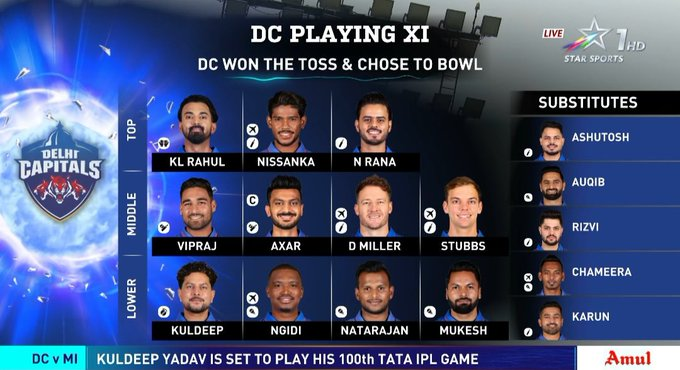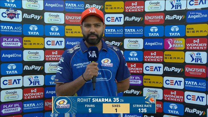 After the powerplay, both batters opened up. Rohit launched a towering six, while Suryakumar displayed his trademark innovation with a well-timed boundary and a clean hit over the leg side. However, just as Mumbai looked set to accelerate, Delhi struck again. Rohit’s patient knock came to an end when Axar Patel deceived him with a slower delivery.