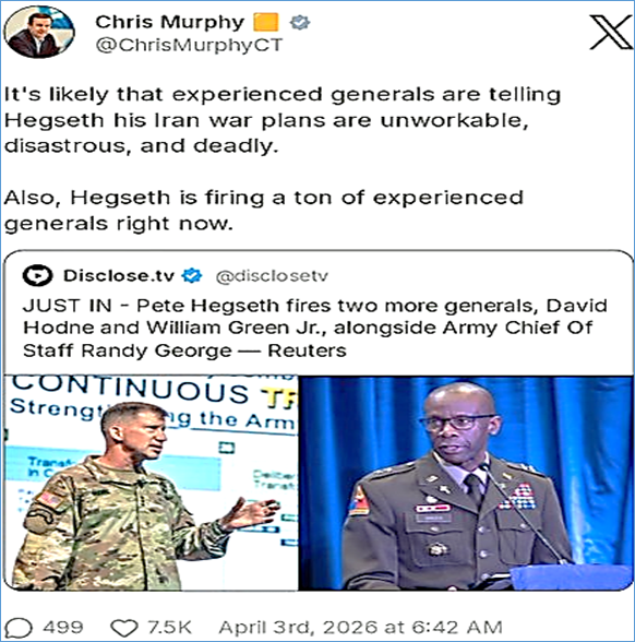Parliamentary Speaker Mohammad Baqer Qalibaf: This War Is Israel’s War, US Battle Tested Generals Defy Hegseth’s Betrayal Of American Lives For Israel.