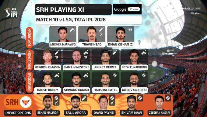 The early blows left Hyderabad reeling, and things worsened when Prince Yadav cleaned up Ishan Kishan with a sharp inswinger. At 11/3 inside four overs, the hosts were in deep trouble.