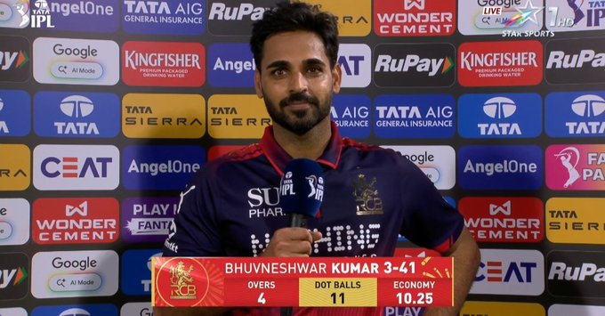 Veteran pacer Bhuvneshwar Kumar was the standout performer with the ball, returning figures of 3/41. He was well supported by Jacob Duffy (2/58), Krunal Pandya (2/36), and Abhinandan Singh (2/30), as RCB maintained control in crucial phases.