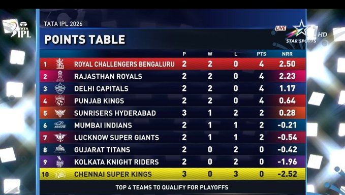 With this emphatic victory, RCB strengthen their position in the points table and continue their strong start to the season. Meanwhile, CSK will look to regroup and bounce back in their upcoming fixtures after a challenging outing.