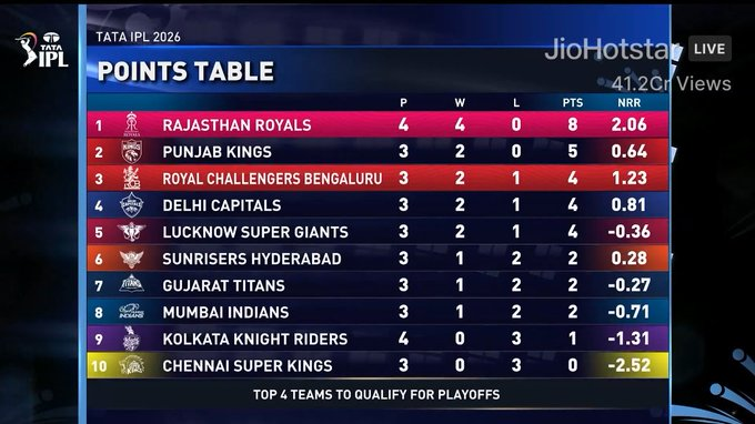 Rajasthan Royals recorded their highest-ever Power-play score in IPL history, racing to 97/1 in six overs. The scoring rate remained relentless as they crossed the 100-run mark in just 6.2 overs, putting the chase firmly in their control.