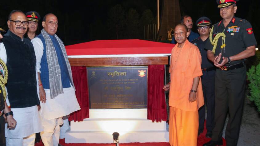 Lucknow, April 2026 : Defence Minister Rajnath Singh and Chief Minister Yogi Adityanath on Saturday inaugurated a state-of-the-art laser, light and sound show at the Smritika War Memorial of the Army’s Central Command, located in the Lucknow Cantonment.