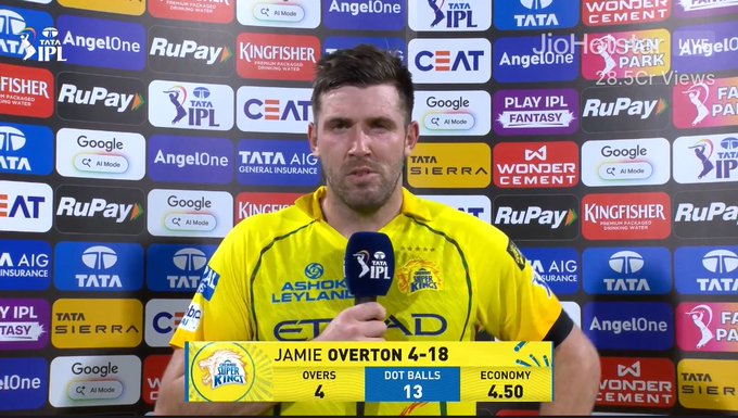 The star of the bowling effort, however, was Jamie Overton, who delivered a sensational spell of 4/18—the best figures of the season so far. Using pace and accuracy, he dismantled DC’s middle order, including key wickets like David Miller and later Tristan Stubbs, who had threatened to take the game away.