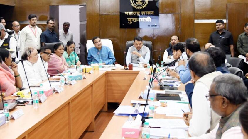 The review meeting, held at the Chief Minister’s Secretariat (Hyderabad House), was attended by Union Minister Nitin Gadkari, Revenue Minister and Guardian Minister Chandrashekhar Bawankule, and several senior officials and public representatives.