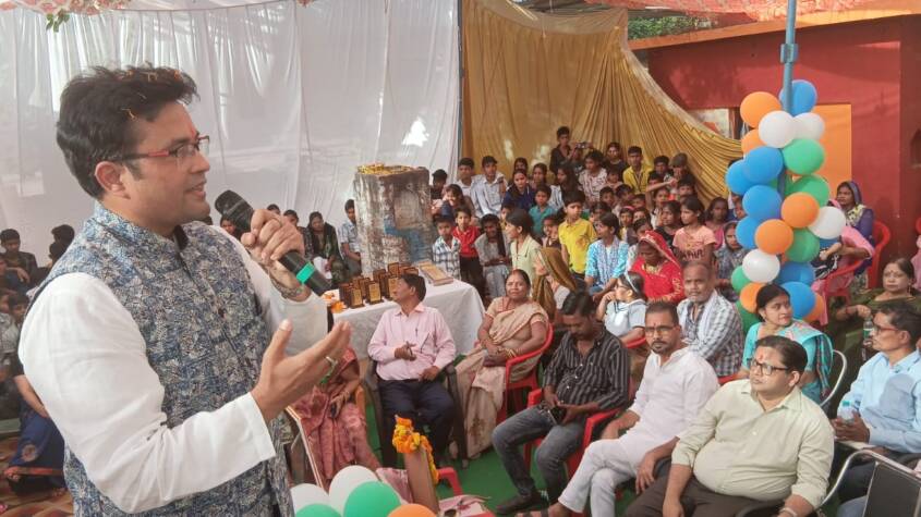 Lucknow, April 2026 : The annual function and talent felicitation ceremony was held on Monday at Visheshwar Dayal Inter College, located in Beligarad, Aliganj. On this occasion, the 80th monthly session of the “Grandmother’s Stories narrated by Jitesh” series was organised under the aegis of the Folk Culture Research Institute. Storyteller Jitesh Srivastava shared an inspiring story with the children, highlighting the importance of focus and consistency in life. The school manager H.N. Srivastava and Principal Sumanlata Mishra felicitated meritorious students.