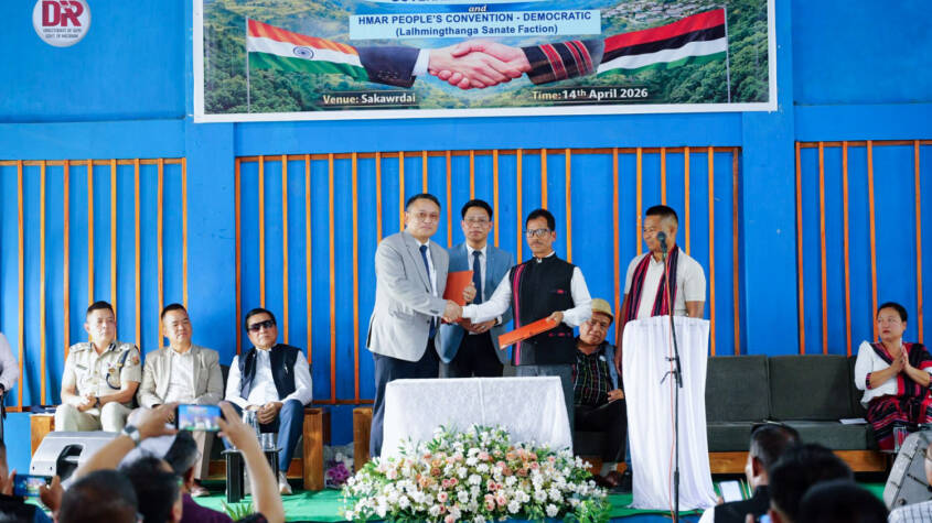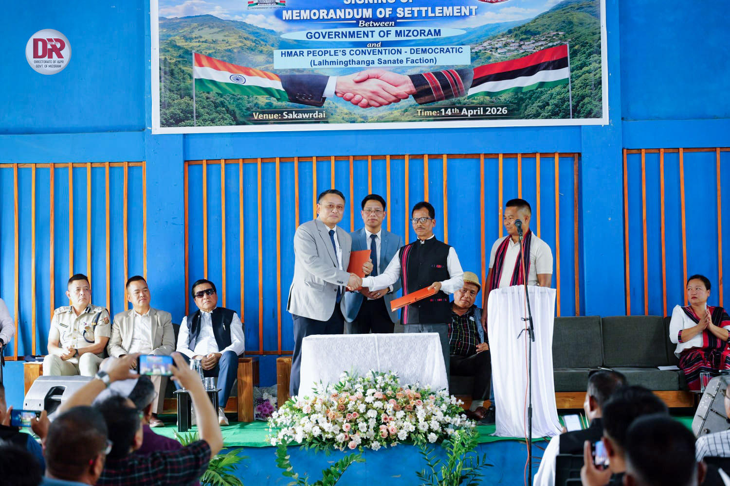 Sakawrdai, April, 2026 : Today at 1:00 pm, a Memorandum of Settlement was signed between the Government of Mizoram(GoM) and the Hmar People’s Convention-Democratic(Lalhmingthanga Sanate’s faction) (HPC-D (LF)) at Vengpui Community Hall, Sakawrdai. Pu David Lalthantluanga(IAS), Secretary, Home Department signed the agreement on behalf of GoM and Pu Lalhmingthanga Sanate, President, HPC-D(LF) signed on behalf of the organisation. Pu Lalmuanpuia Punte, MLA and Adviser to the Chief Minister of Mizoram (Political), and Pu Rodingliana Chawngthu, IPS, DIG (Northern Range), were also present on this occasion.