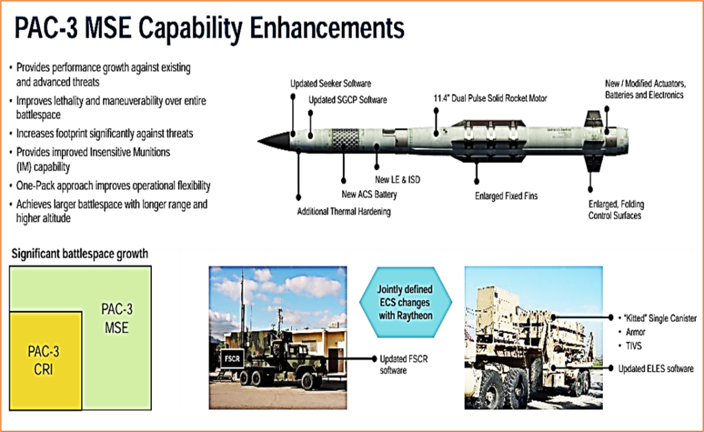 target than can be achieved with blast-fragmentation kill mechanisms. Building on the combat-proven PAC-3 Cost Reduction Initiative (CRI), the PAC-3 MSE expands the lethal battlespace with a two-pulse solid rocket motor, providing increased performance in altitude and range.