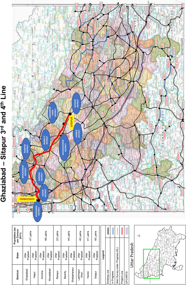 - Ghaziabad – Sitapur is an existing double line section forming a key part of Delhi- Guwahati High Density Network (HDN 4).