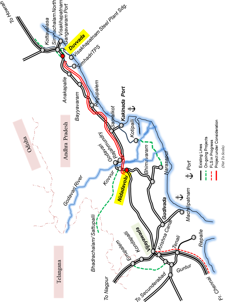 - The line capacity utilization of the section has already reached up to 130%, leading to frequent congestion and operational delays. The line capacity is expected to increase further due to proposed expansion of ports and industries in the region.