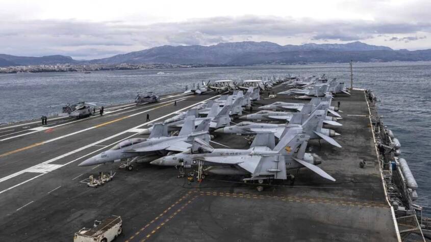 This means the Ford can directly support such operations by providing air cover for US naval units, conducting long-range precision strikes against coastal or naval targets if required, and deterring attempts to challenge maritime control through asymmetric means such as fast-attack craft, drones, or missile systems. Its air wing also enables rapid response options across a wide operational area, reducing reliance on land-based airfields and increasing operational flexibility.